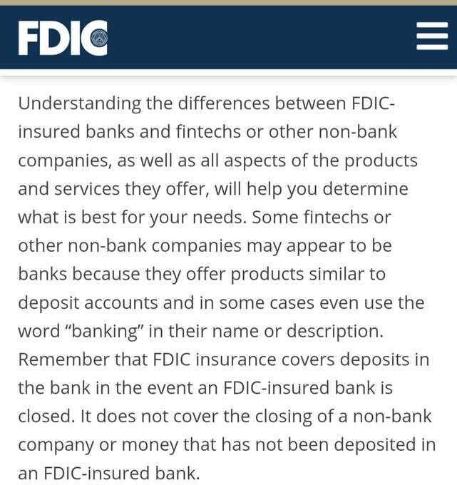 Still, this doesn't matter if fintech fails & hasn't held customer funds in FDIC insured banks (in USD).