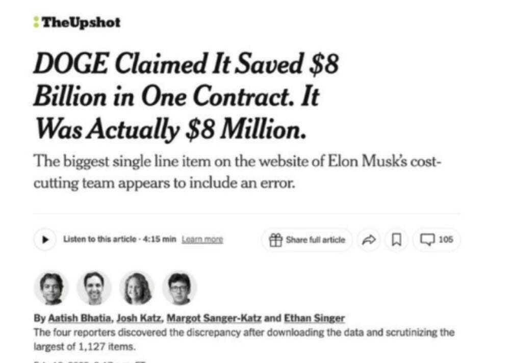 There are already numerous calculation errors and it seems that DOGE doesn’t even know how to count and don't understand the contracts. From @electricfuture: