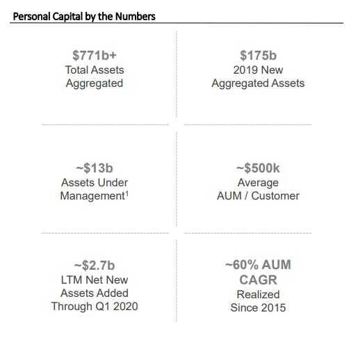We'll use @PersonalCapital (PC) at acquisition, one of many modern fintech asset managers that rep volume growth. But asset managers earn their fee annually on AUM so it takes a LOT of AUM to get scale. PC had higher take rate b/c of hybrid human/robo model but still low.
